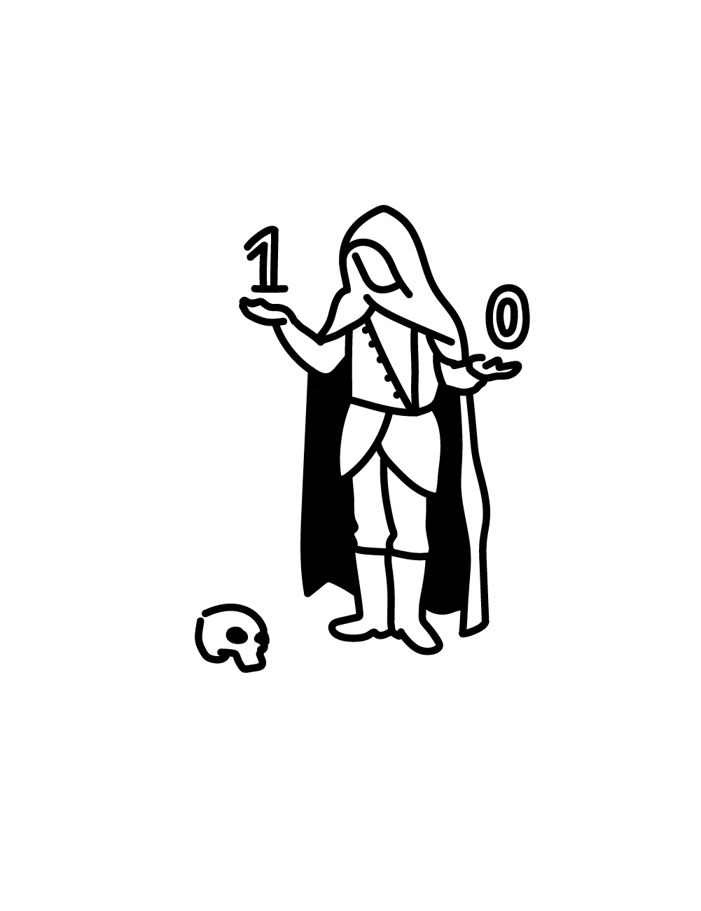 I’d found something! If X is the opposite of Y, they are bound by a relation — something is going on between them. For Hamlet to be means because not to be exists. That’s where it — the bit — fails. In a computer’s transistor, to be or not to be, is split: 0 or 1, one erased, the other survives, but stripped of its opposite. The unmeasurable between — dumped, destroyed. Woohoo! Human thought couldn’t be captured coldly in ones and zeros.