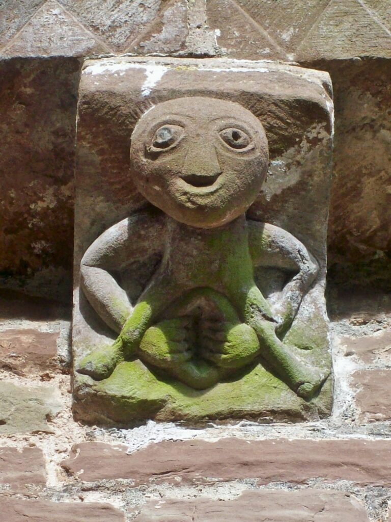 Sheela na Gigs — Slavic and Irish goddesses of fertility — are architectural grotesques of naked women extravagantly showcasing their enormous vulvas. They are found throughout Europe on churches, cathedrals and castles. Most of the remaining Sheelas today are found in Ireland, Great Britain, France and Spain.